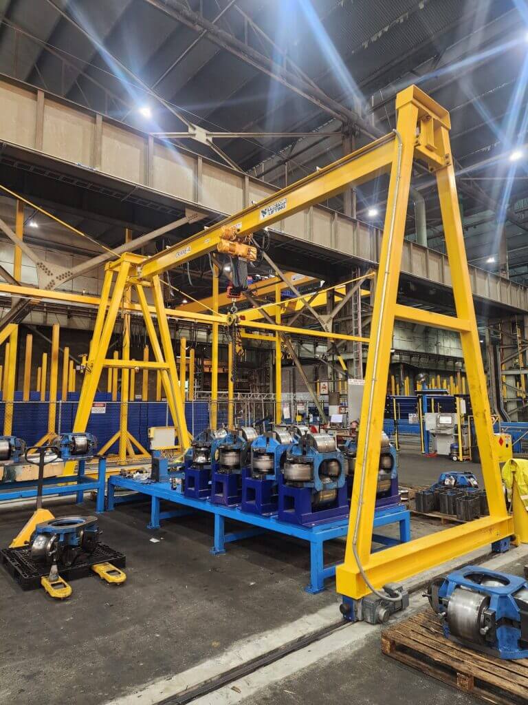Capacity from 250kg up to 10,000kg and span from 3m up to 6m (plus) gives the Hercules mobile gantry crane a wide range of possibilities and areas to be deployed. The simple design makes it easy to assemble and dismantle anywhere indoors or outdoors. Effortlessly shifted on its castors. Height adjustable versions can be built to order.