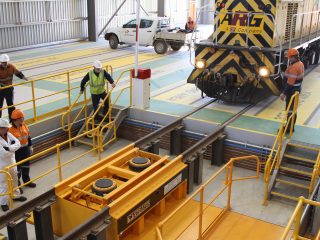 The Traction Motor / Wheelset Drop Table is designed to support and lower the wheelset/traction motor assembly from the locomotive and traverse the wheelset into an open area of the workshop where it can be removed for maintenance. A number of features are available for the drop table to suit the specific operating requirements of the site, including a Traction Motor Positioner which manipulates the traction motor during removal and installation. The drop table is an automated system that is controlled from a Master Control Console (MCC) or radio controller. The Vector Lifting drop table allows for easy access to the wheelset for efficient uncoupling from the bogie.