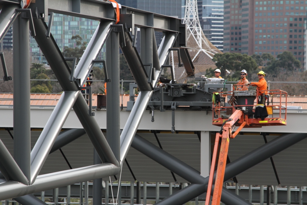 All components, including the main drive bogies, trailing bogies and control system were manufactured and installed by Vector Lifting. Design development and site installation included working along side the arena architect and structural engineer to develop a product that suited the design scope of the project. The complexity around the structure and the requirements outlined by the architect ensured constant collaboration was required to achieve a successful outcome.
